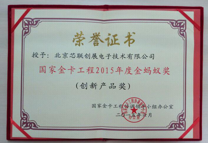 在今年的中国国际物联网展会上,我公司产品SLR5100读写模块荣获2015年度国家金卡工程金蚂蚁奖(创新产品奖);便携式蓝牙超高频读写器SLR5101获得国家金卡工程金蚂蚁奖(创新应用奖)。